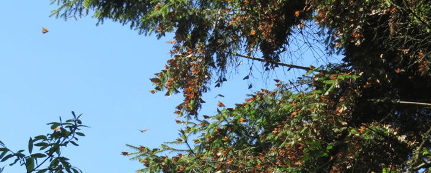 Journey NorthMexican officials have confirmed the monarch's massive arrival to the winter sanctuaries. During field trips November 6-8, clusters were found in the Piedra Herrada, El Rosario, and Sierra Chincua sanctuaries. Notably, 10 trees in the Sierra Chincua were almost completely covered with butterflies. Monarchs had been flying overhead continuously since November 7th and, with sunny skies and gentle winds predicted, conditions for migration into the region were idea. "Let's raise our glasses to toast the arrival of this healthy, strong generation of monarchs of the 2015-2016 winter season!" exclaimed Estela Romero, our local reporter in Angangueo.