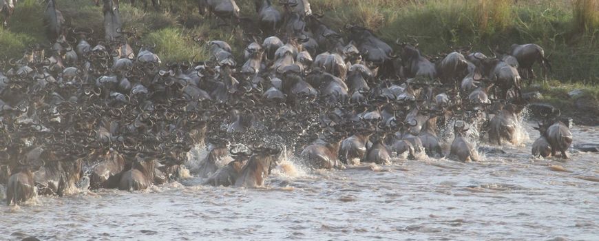 YaleOf the 1.2 million wildebeest making the annual migration which peaks from late July through September, an average of 6250 animals drown or are trampled crossing the Mara, which empties into Lake Victoria and is the key water source for wildlife of the greater Serengeti Mara Ecosystem of Kenya and Tanzania.