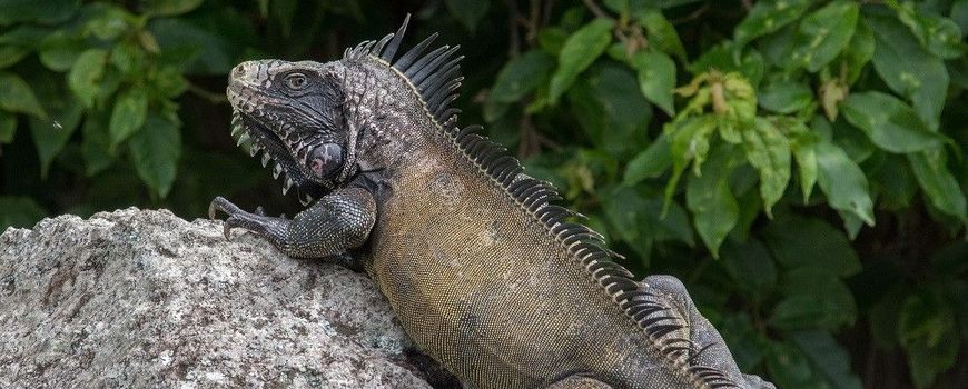 Iguanas non-native to the Caribbean islands have their natural home in Central and South America and are brought to the Lesser Antilles most commonly as stowaways in shipping containers, on boats or as released or escaped pets. They are larger and more competitive than native Caribbean iguanas and lay many more eggs than these.