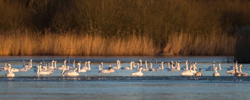 The Bewick’s swan is the smallest of the three species found in the Netherlands and Belgium. Bewick’s swans breed on the northwest coast of Russia and spend the winter in northwestern Europe. They used to spend their winters in England and the Netherlands, but now they shift to Northwest Germany. For migrating birds, such as the Bewick’s swan, timing is crucial: if they arrive at the breeding site too late, they miss the peak food availability and their breeding success declines.