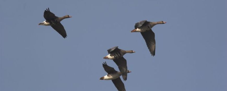 Verschillende soorten ganzen, zoals de brandgans, komen uit het hoge noorden naar de delta van Nederland om hier de winter door te brengen. De vogels vliegen in de kenmerkende V-formatie naar hun bestemming. Soms zijn er groepen van wel meer dan honderd ganzen te zien.