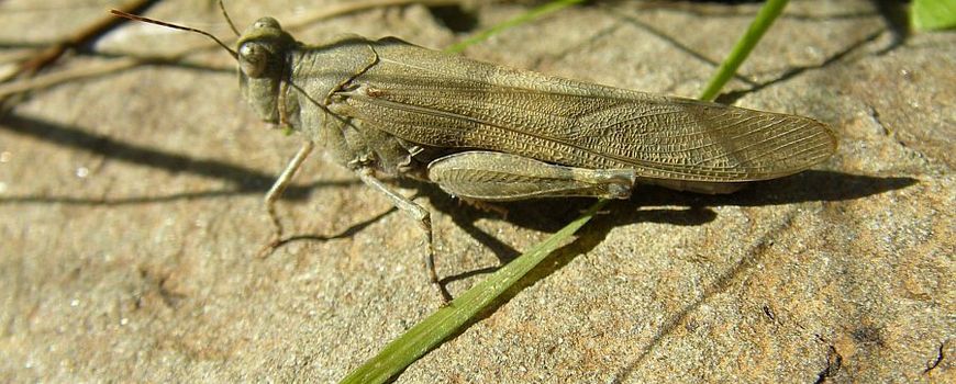 De kiezelsprinkhaan (Sphingonotus caerulans) is onopvallend bruin van kleur, maar laat bij het opvliegen zijn helderblauw gekleurde vleugels goed zien. Daarmee lijkt deze nieuwkomer sterk op de van oudsher in Nederland voorkomende Blauwvleugelsprinkhaan, die een duidelijke voorliefde heeft voor zanderige terreinen. De kiezelsprinkhaan leeft op droge, zanderige of stenige grond en voedt zich met gras en andere planten. Het in onbruik zijnde, deels overwoekerde rangeerterrein vormt dus een perfect leefgebied voor dit insect. Er zijn tenminste veertig exemplaren aanwezig, vermoedelijk meer. Hoe de kiezelsprinkhanen in Rotterdam verzeild zijn geraakt is niet bekend. Het zijn goede vliegers en kunnen via het spoorwegennetwerk naar de Laan op Zuid zijn gevlogen, maar het is ook goed mogelijk dat er een aantal mee zijn gekomen met een lading grind of dat ze een lift van een trein hebben gekregen.