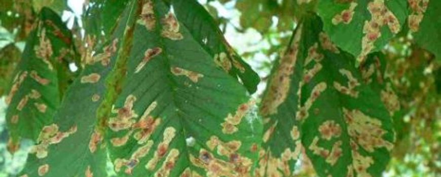 Op veel plaatsen vertonen de bladeren van paardenkastanjes weer massaal bruine vlekken. Het gaat om aantastingen door de paardenkastanjemineermot.