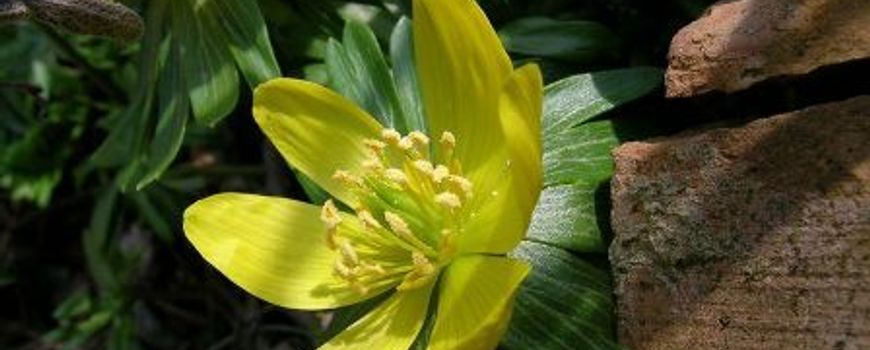 De winterakoniet (Eránthis hyemális) is een klein, donkergroen plantje dat meestal onopvallend onder de bomen groeit. In de tweede helft van de winter, als de bomen nog lang geen blaadjes hebben, komen de gele boterbloemachtige bloemetjes tevoorschijn. In het bloemetje zitten honingbakjes. Vroege bijen maken dankbaar gebruik van deze ‘winternectar’.