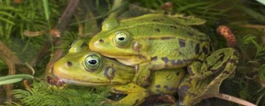 In de maand juni zijn het meestal groene kikkers die zich in de oeverzones van poelen, vijvers en sloten ophouden. Soms tref je wel eens een late bruine kikker aan, een soort die het water meestal direct na de voortplantingsperiode (maart-april) verlaat. De groene kikkers zijn echte waterkikkers en meer zonaanbidders dan de meeste andere soorten. Hun zonneplekjes zijn altijd direct in de nabijheid van water te vinden, zodat ze bij gevaar direct daarin kunnen vluchten. De meest voorkomende soort in tuinvijvers is de bastaardkikker. Er zijn echter twee andere soorten groene kikkers in Nederland. Op www.plonzenweekeinde.nl is een herkenningskaart te downloaden waarin de verschillen aangegeven staan. De kwakende mannetjes van deze drie soorten zijn op geluid te onderscheiden. Op de website zijn deze alle drie te beluisteren.