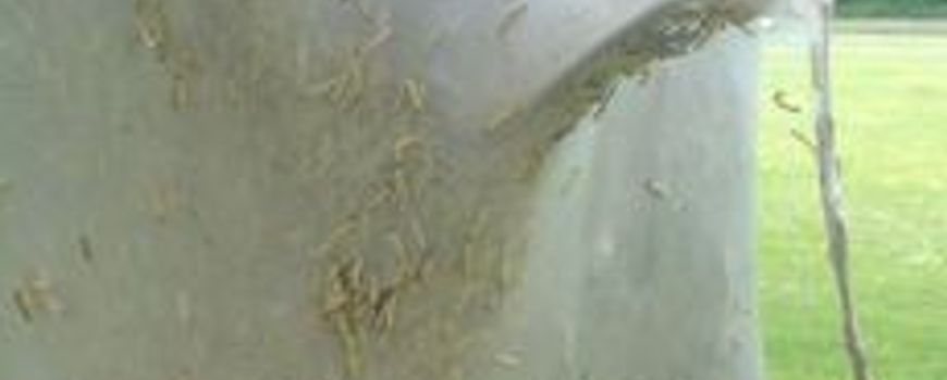 Het zijn inderdaad kunstwerken à la Christo: kaalgevreten bomen die helemaal met glanzende witte zijde zijn overdekt. Maar dit is niet het werk van de kunstenaar die bekend is om zijn inpakken van grote gebouwen en bruggen, maar van de rupsen van de stippelmot. Na de meldingen over massale rupsenvraat in de eiken, komen er nu ook uit diverse delen van het land waarnemingen van deze ingepakte bomen. In Eindhoven was een lange dubbele rij bomen helemaal tot zilvergrijs kunstwerk omgevormd.