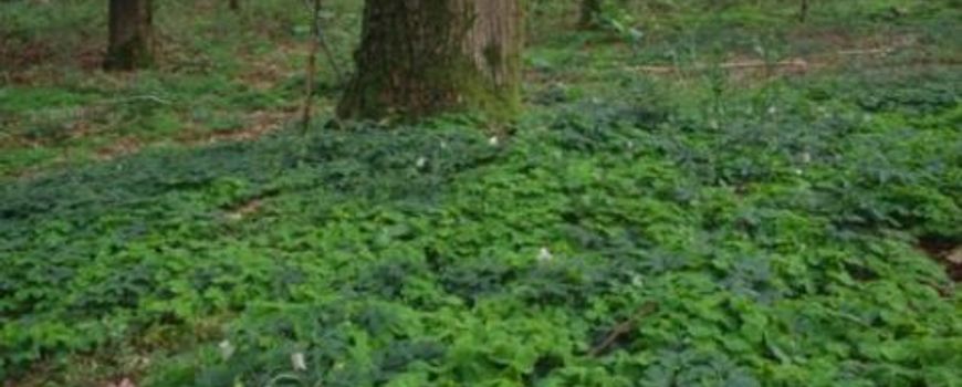 | Open plekken in oud eikenbos bij Doorwerth werden in de winter van 1948-1949 ingeplant met linde. Nu, een halve eeuw later... | ... is hier de bosbodem in het voorjaar bedekt met een tapijt van bosanemoon waartussen zich tal van andere bosplanten hebben weten te vestigen |