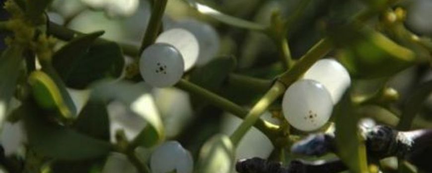 23-JAN-2009 - Kramsvogel en maretak profiteren van elkaar. De vogel eet de bessen en zorgt voor de verspreiding van de plant.