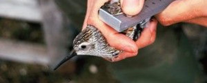 Foto: Een onderzoeker meet de vleugellengte van een bonte strandloper die zojuist is aangekomen in Siberië / Ingrid Tulp