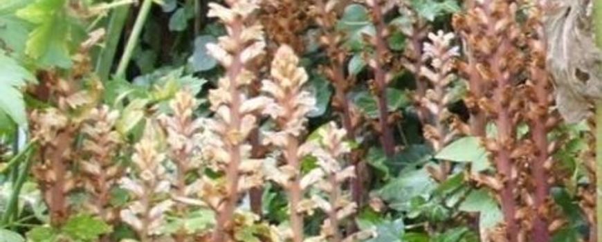 De klimopbremraap is aan zijn nieuwe bovengrondse seizoen begonnen. Vanaf begin juni tot in september vormt de klimopbremraap zijn markante bloeistengels.
