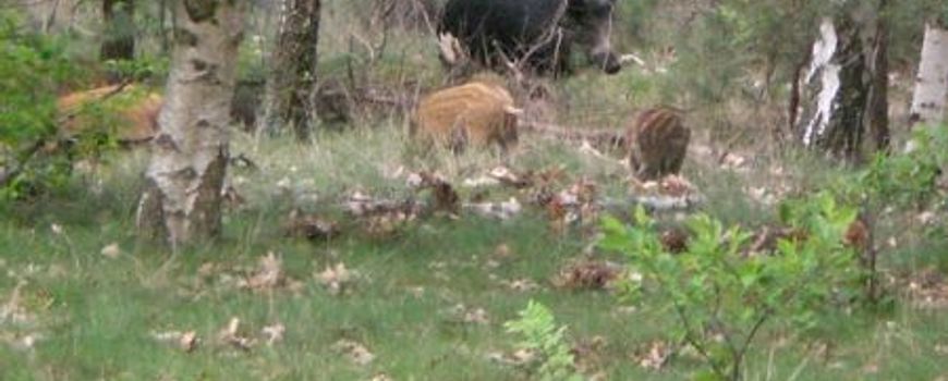 In het Brabantse Leenderbos worden sinds vorig jaar wilde zwijnen gezien. En er zijn jongen geboren! Op 23 april van dit jaar zijn een zeug en minimaal drie jongen gezien en op de foto gezet.