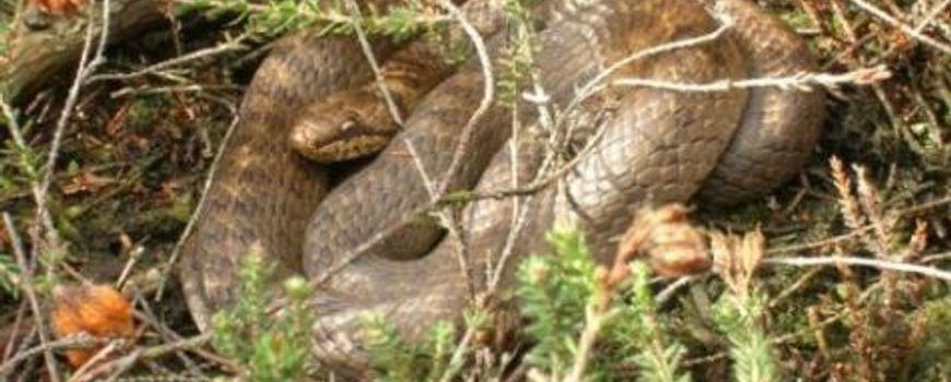 | De gladde slang is een van de soorten die gebaat is bij oude, extensief beheerde heide. |