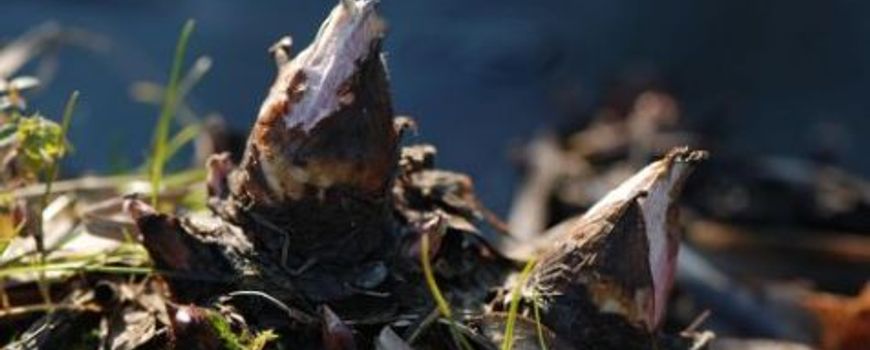 Naast de bolgewasjes, de katjesdragers en de winterannuellen uit eerdere natuurberichten, behoren ook hoefbladen tot de voorjaarsboden. De bekendste en meest voorkomende hiervan zijn Klein hoefblad, met de stralende gele bloemen, en Groot hoefblad, met de lilapaarse bloemhoofdjes. Ze zijn te vinden op voedselrijke, vochtige grond, vooral langs de waterkant. Hoefbladen behoren, net als de Paardenbloem en het Madeliefje, tot de familie van de composieten of asterachtigen. Dit is een van de grootste plantenfamilies in ons land. Toch zijn de hoefbladen opmerkelijk te noemen, want ze zijn er elk jaar niet alleen als een van de eersten bij, maar doen dat ook op een ongebruikelijke wijze. Uit de kale grond verschijnt eerst de bloem; pas enige tijd later volgen de bladeren. Je kunt dat proces de komende weken zelf nog meemaken. Maar wees er snel bij want ook het Groot hoefblad heeft zijn kop al boven het maaiveld!