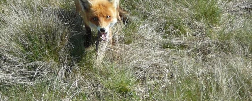 Enkele dagen na het voorval met de ringslang deed Harm weer een leuke waarneming met de vos in de hoofdrol. Dit keer waren er geen vraagtekens bij de waarneming. Nabij Radio Kootwijk fotografeerde Harm een vos die net een hazelworm verschalkte.