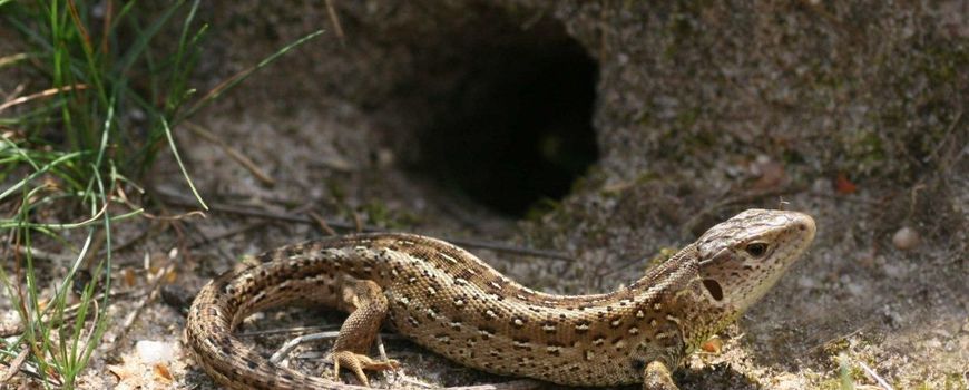 Juni is bij uitstek de maand dat de vrouwtjes van de zandhagedis extra hard aan het werk moeten. Op de heide en in de duinen kon je de afgelopen weken gravende vrouwtjes aantreffen op de randen van zandpaden en open zandplekken.