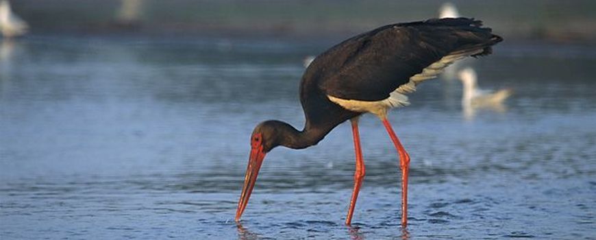 De zwarte ooievaar, het broertje van de witte ooievaar, trekt in deze maand in kleine aantallen over Nederland. Soms komen ze ook aan de grond, zoals recent in de Groote Peel op de grens van Limburg en Brabant, waar maar liefst 35 exemplaren aanwezig waren: een ongekend hoog aantal.