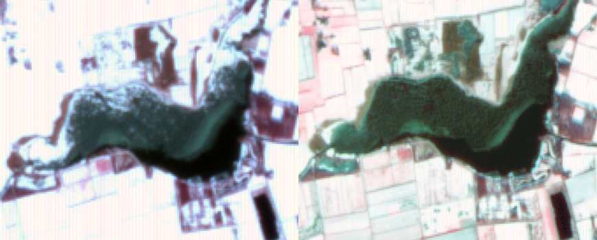 In Oost-Groningen deed koning winter afgelopen week zijn intrede met ijsvorming op het open water als gevolg. Op basis van satellietbeelden is de ontwikkeling van het ijs en de sneeuwbedekking op het Oldambtmeer, Schildmeer en Hondshalstermeer te volgen.