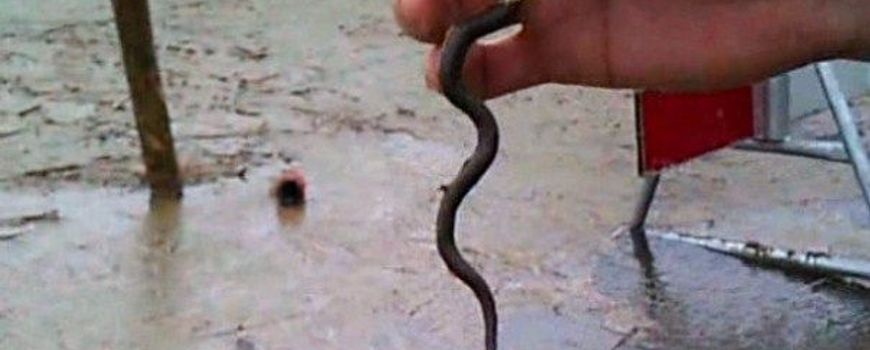 Hoogwater verdrijft ringslang uit overwinteringplaats