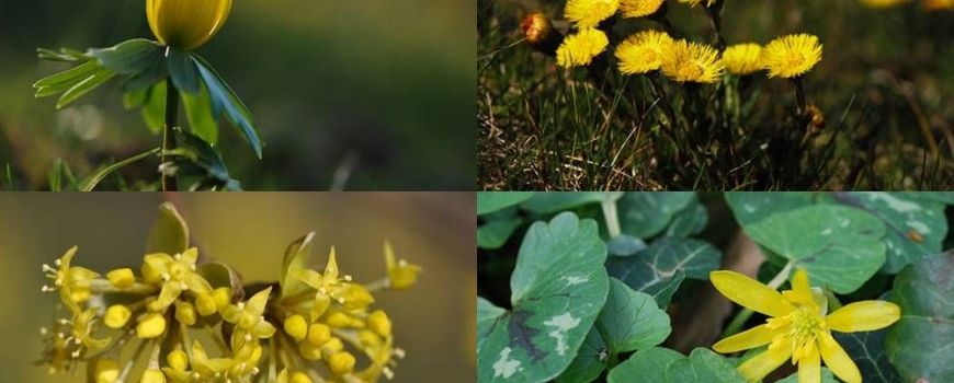 Sneeuwklokjes werden al in december gezien, maar de laatste weken kwamen daar andere voorjaarsbloeiers bij zoals Winterakoniet, Krokus en Speenkruid. Ook een aantal naaktbloeiende bomen en struiken als Gele kornoelje en Toverhazelaar kwamen in bloei. Op een enkele plek begint Forsythia al te bloeien; binnenkort zijn de narcissen, dotterbloemen en geelsterren aan de beurt. Veel gele bloemen dus en dat zorgt elk jaar in ieder geval voor een frisse en vrolijke start van het nieuwe seizoen.