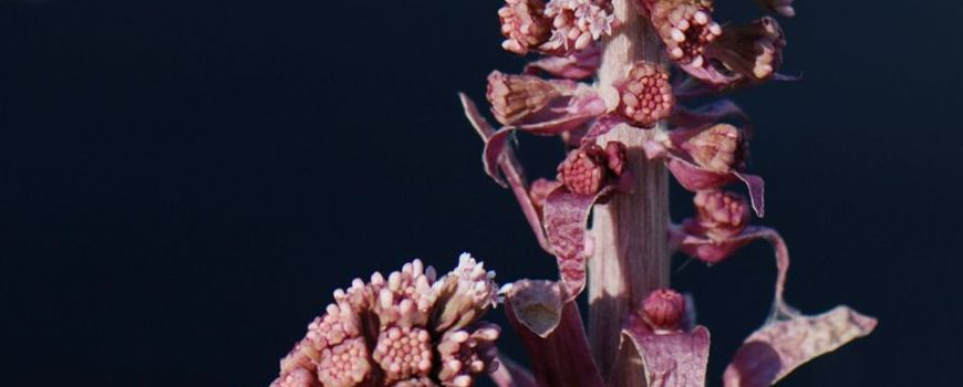 Zo’n grote bloeiwijze van Groot hoefblad (Petasites Hybridus) vlak boven de grond is opvallend. Vooral omdat er nog geen blad te zien is. Dat hebben de hoefbladen gemeen: hun opvallende bloemen verschijnen nog voor de bladen zich ontwikkelen. In dat opzicht zijn het de bloesembomen onder de kruidachtige planten.