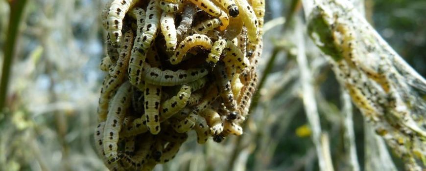 De afgelopen dagen zijn op veel plekken weer veel wit ingepakte bomen en struiken te vinden. Dit is het werk van duizenden ijverige rupsen van spinselmotten. De spinsels zijn volledig ongevaarlijk, en wie dichterbij komt kan trossen en hordes van wel duizenden rupsen aan het werk zien met hun meesterwerk. Wel is het lastig als uw fiets of auto door de rupsen tot kunstproject wordt verheven.