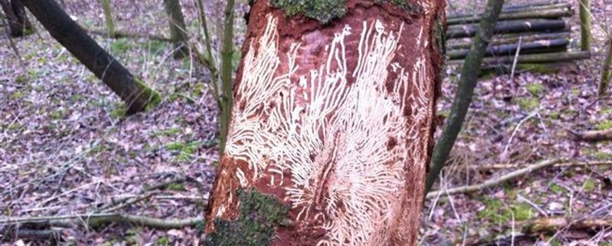 Enige tijd geleden ontving Leen Moraal, onderzoeker insectenplagen bij Alterra, foto’s van dode bomen van de Amerikaanse vogelkers. Het ging om bomen in een bosje van Nationaal Park De Maasduinen in Noord-Limburg. Op de stam waren duidelijke broedbeelden van bastkevers te zien met moedergangen en uitwaaierende larvengangen. Voor zover bekend is een dergelijke aantasting nooit eerder in Nederland gezien.