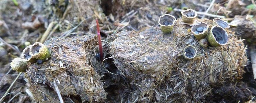 Waar gegeten wordt, wordt gepoept. En van deze mest profiteren weer tal van soorten. En misschien klinkt het wat gek, maar zelfs de manier van poepen kan van belang zijn. Onlangs is in de Millingerwaard op een oude koniklatrine het mestnestzwammetje waargenomen. Deze gewone inheemse soort heeft sporen die zo klein zijn dat ze vrij gemakkelijk over grote delen van Europa kunnen verspreiden. Toch wordt het paddenstoeltje maar zelden in ons land gezien: in 2011 werd hij waargenomen in het Geuzenbos bij Oostvoorne.
