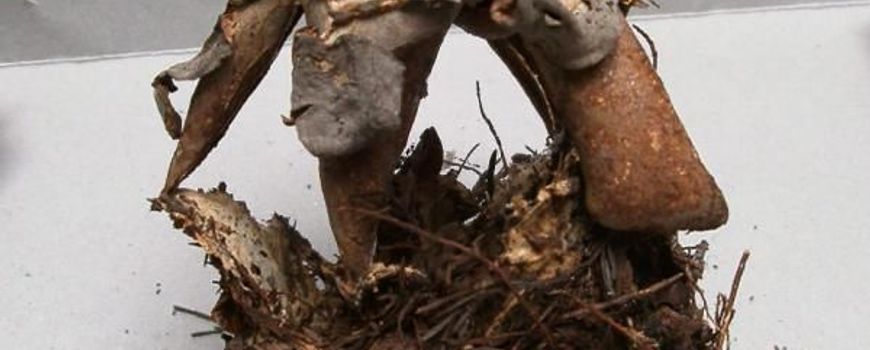 Enkel in Lubbeek werd herbariummateriaal verzameld. Maar op de foto’s van Hans Roosen en Jurgen Bernaerts zijn de belangrijkste kenmerken duidelijk te zien: aan de punten van de slippen hangt duidelijk nog zwamvlok, in het midden hebben ze zich los geduwd en het gesteelde bolletje heeft een gewimperde mondopening zonder hof.