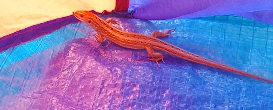 Op zomerse dagen zijn zandhagedissen zeer ondernemend. Zo blijkt uit de waarneming van een badgast op de Brouwersdam (ZL): ze trof een prachtige zandhagedis aan in haar strandtent.