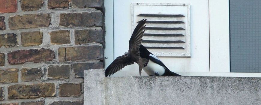 De volgende ochtend was dit exemplaar hier nog steeds aanwezig maar leek hij verzwakt. Gierzwaluwen zijn immers uitgesproken insecteneters, die ze in de vlucht verschalken. Naarmate het kouder wordt, daalt het aanbod aan vliegende insecten echter drastisch. Ook de storm van de voorbije dagen zal het 'vliegen vangen' er zeker niet makkelijker hebben op gemaakt. Rond 08:15 werd de vogel aangevallen door een Ekster, die in de verzwakte Vale gierzwaluwen een makkelijke zuiderse hap zag. De onfortuinlijke dwaalgast viel na een korte schermutseling van de Watertoren en werd door de toegesnelde vogelkijkers overgebracht naar het Opvangcentrum voor Vogels en Wilde Dieren in Oostende. Het dier is - dankzij de goede zorgen - intussen aan de betere hand en zal vermoedelijk snel weer kunnen worden losgelaten.