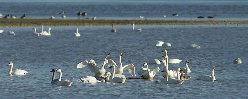 Hetzelfde als de kolganzen deden kleine zwanen bijvoorbeeld in de Noordwaard in de Biesbosch. Bij honderden kozen ze ervoor om te foerageren in een nieuw stuk plasdras langs de oever van het open water. Een bijkomend voordeel voor deze ganzen en zwanen is dat ze zich niet hoeven te verplaatsen om te gaan badderen en drinken. Voedsel en water op één plek wordt duidelijk geprefereerd. Bovendien heerst er in de overstroomde gebieden veel rust, zodat er geen energieverspillende paniekvluchten hoeven te worden uitgevoerd.
