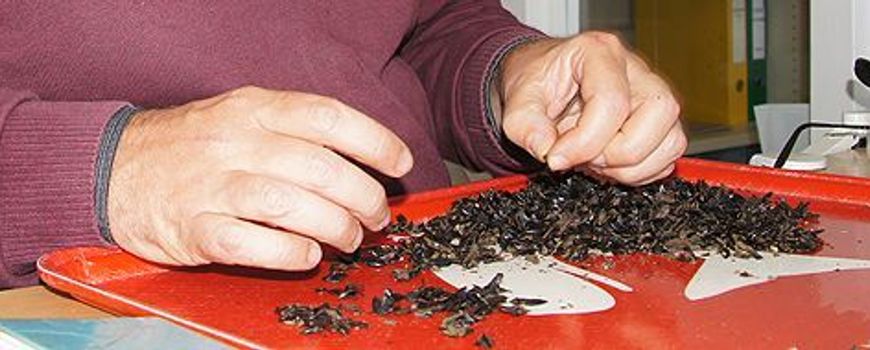 Het lijkt niet het smakelijkste klusje: de resten uit het maagdarmkanaal van een dood aangespoelde walvis sorteren. Toch levert het een hoop interessante informatie op over hun eetgewoonten. Wanneer tandwalvissen inktvissen eten, blijven de harde bekjes onverteerd achter. Omdat de bekjes per soort verschillend zijn, kun je zien welke inktvissoorten het dier precies heeft gevangen. Ecomareconservator Arthur Oosterbaan onderzocht de inktvisbekjes uit een butskop die bijna 57 jaar geleden op Texel aanspoelde. Hij ontdekte dat deze zich vooral te goed heeft gedaan aan de Atlantic armhook squid.