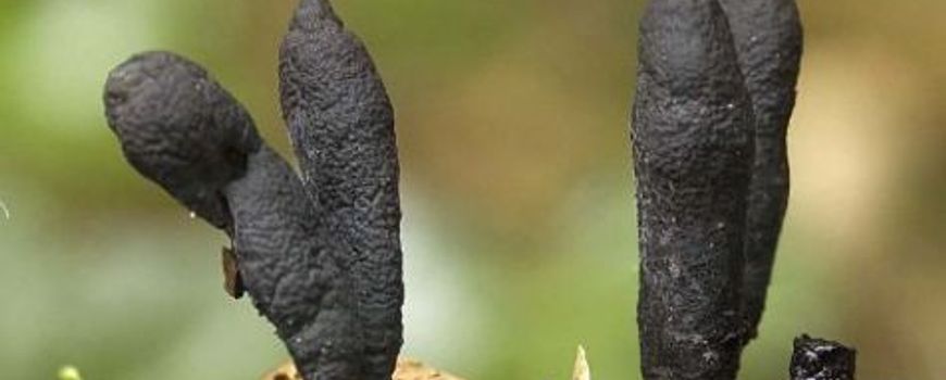 Bij Vliegenzwammen werkt dat waarschijnlijk ook wel zo. Maar bij Berkenzwammen en Geweizwammetjes is wat anders aan de hand. De foto’s bij dit bericht zijn van een verwant van het Geweizwammetje, de Esdoornhoutknotszwam (Xylaria longipes). Die soort vormt zwarte, slank knotsvormige paddenstoelen op afgevallen takken van Esdoorn of Es, en komt algemeen voor in de tweede helft van het jaar. Vaak zitten er tientallen exemplaren op één en dezelfde tak, en in dit geval zijn die het produkt van vele individuele schimmels.
