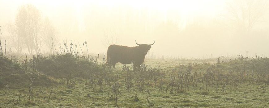 Met temperaturen van rond de 10 graden Celsius is deze winter tot nog toe erg mild. Het zou zelfs zo maar kunnen dat het gras her en der nog kleine beetjes groeit. Voor de grazers maakt het niet uit. Met hun dikke wintervacht ligt hun optimale temperatuur rond de 4 graden. Dus of het nu plus 10 is of -2, beide liggen er even ver vandaan.