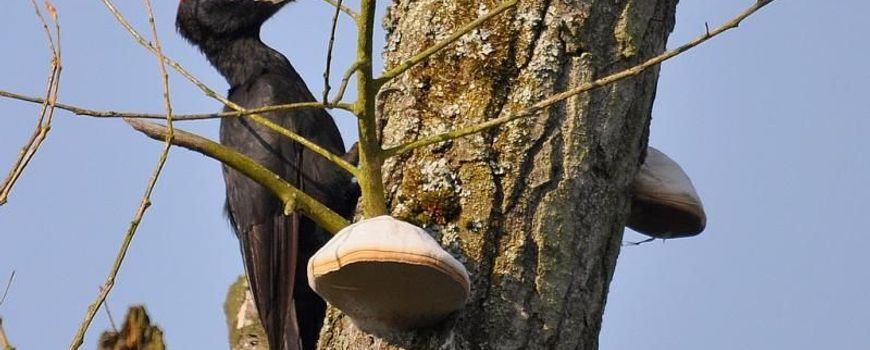 Misschien ken je de scène uit de Britse komische serie Fawlty Towers waarin hotelbaas John Cleese door erop te kloppen de muren controleert, ‘just checking the walls’. Dat doet de Zwarte specht ook. Door te kloppen op de stam gaat hij op zoek naar zwakke plekken waar de Beuk vanbinnen aangetast is door schimmels. Op die plaats hakt hij een oppervlakkig gat in de schors, slechts enkele centimeters diep. Zo kan regenwater daar insijpelen en kunnen schimmels binnendringen om het rottingsproces te versnellen en het hout zachter en bewerkbaar te maken.