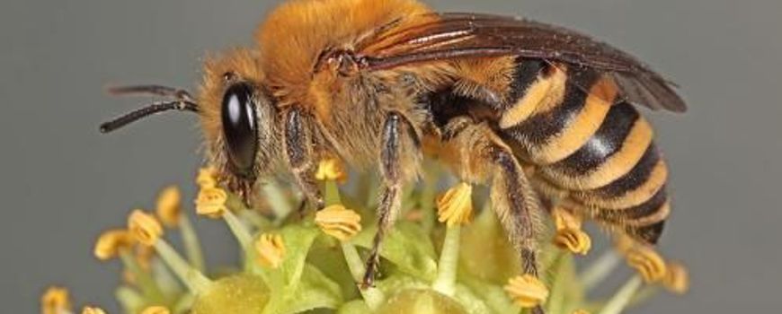 Zoals alle bijen verzamelt de klimopbij (Colletes hederae) stuifmeel. Dit slaat hij op in een zelfgegraven holletje dat als broedkamer voor zijn larven dient. Die larven zijn nogal kieskeurig: ze lusten alleen stuifmeel van klimop. Vandaar dat klimopbijen alleen op de bloemen van klimop te vinden zijn. Klimop bloeit alleen in het najaar, dus ook klimopbijen zult u alleen in dit seizoen zien. De rest van het jaar leven zij als larve en pop onder de grond.