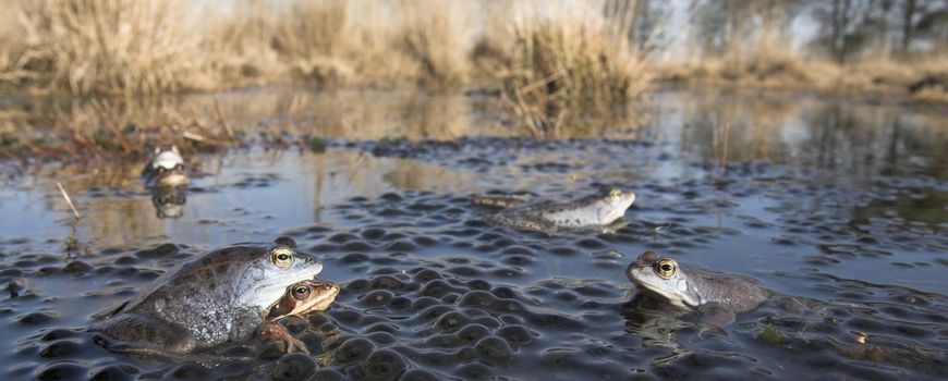 Lukt dat dan zo makkelijk, legsels van Heikikker onderscheiden van die van Bruine kikker? Ook hier is een ferme dosis ervaring en een heel precieze timing nodig. Dril van Heikikker heeft doorgaans een kleinere diameter en blijft keurig op je handpalm liggen terwijl de klompen van Bruine kikker almaar door je vingers willen doorglippen. Klinkt makkelijk maar is het niet. Verse legsels van Bruine kikker kunnen immers ook zeer compact zijn en oudere legsels van Heikikker willen ook al wel eens van je handpalm glijden. Timing is dus cruciaal, al kan het topmoment voor ‘heikikkerlegselmonitoring’ met de nodige ervaring doorgaans goed worden ingeschat: 5 à 7 dagen na de eerste eiafzet van Bruine kikker.