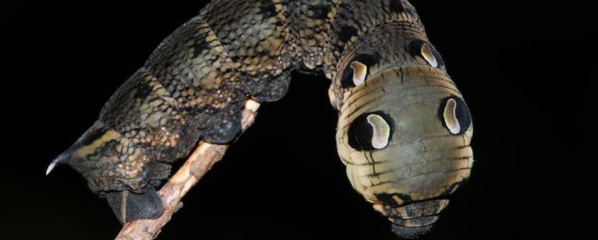 De voorbije weken merkten heel wat mensen een bizar beestje op in hun tuin. Volgens sommigen bewoog het als een slang, anderen schrokken van de opvallende ‘angel’. Niets om bang van te zijn: het is de rups van het Groot avondrood, een prachtige nachtvlinder.