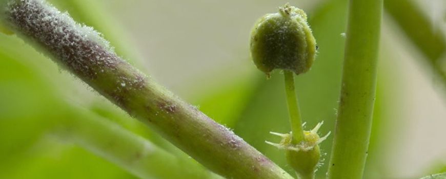 Het gaat hierbij om een meeldauw. Meeldauwen zijn schimmels die behoren tot de groep van zakjeszwammen. Tot deze groep behoren ook de bekerzwammen en morieljes, maar hun levenswijze is geheel anders. Meeldauwen zijn schimmels die op levende planten parasiteren en deze een wat grijs “bemeeld” of “wollig” uiterlijk geven. Er is een hele industrie gebouwd op het fabriceren van fungiciden waarmee je meeldauwsoorten op allerlei cultuurgewassen kunt bestrijden.