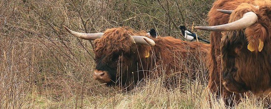 Tijdens het najaar en de winter zie je regelmatig eksters op de rug van een Schotse Hooglander of Galloway rund zitten. Iets waar beide dieren maar wat blij mee zijn. De ekster vervult dan namelijk de rol van ossenpikker en verwijdert zo vervelende teken uit de vacht van grote grazers.