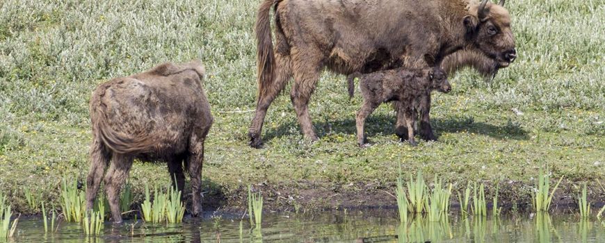 Eind juni is het eerste wisentkalfje van 2014 geboren in de wisentkudde in het Kraansvlak, onderdeel van het Nationaal Park Zuid-Kennemerland. Moeder en kind maken het goed en maken volop deel uit van de kudde.