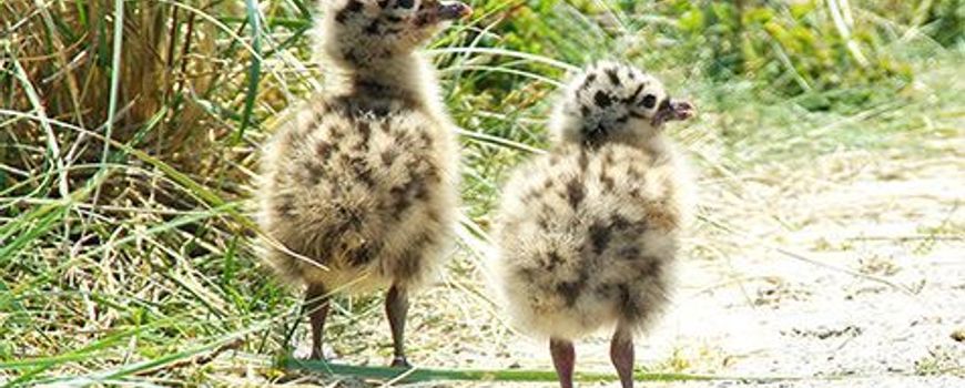 Meeuwenkuikens kunnen lopen zodra ze uit het ei zijn gekropen. Hoewel ze nog niet kunnen vliegen vind je ze dus al snel ver van hun ouderlijk nest. Dapper stappen ze over het wandelpad van het Duinpark rond Ecomare. Halverwege juli krijgen de meeuwenjongen hun eerste vliegles. Maar het duurt nog wel even voordat ze net zo behendig zijn als hun ouders. Dat ze een hoop kabaal maken is niet erg. Dat meeuwengekrijs hoort er echt bij als je een zeecentrum bezoekt.