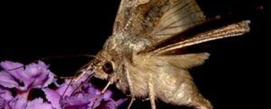 De meest algemene soort is de gamma-uil. Deze trekvlinder komt in het voorjaar ons land binnen en plant zich voort. Nu in juli en augustus vliegen de nakomelingen van deze binnenkomers. Omdat gamma-uilen eigenlijk dag en nacht actief zijn en heel veel vliegen, hebben ze ook veel brandstof nodig. Daarom zie je ze vaak en veel foerageren. De vlinderstruik blijkt daar zowel overdag als ’s nachts een ideale plant voor te zijn. Nachtvlinders maken ook dankbaar gebruik van andere bloeiende planten zoals hanggeranium en liguster. Er zijn planten die zich helemaal hebben gespecialiseerd op nachtvlinders. Zo gaan teunisbloemen pas ’s avonds open en de geur van kamperfoelie wordt vooral in de avonduren verspreid om nachtvlinders te lokken die met hun lange roltong onderin de diepe kroonbuis bij de nectar kunnen komen. Maar ook op de vlinderstruik is meer te zien dan alleen gamma-uilen: ook koperuil, goudvenstertje, huismoeder, volgeling, witstipgrasuil en nog veel meer nachtvlinders zijn er op te vinden.