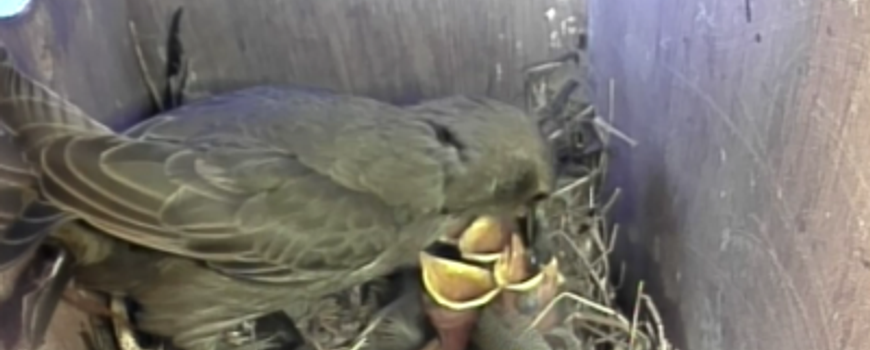 Een bijzonder verschijnsel: een net uitgevlogen spreeuw die zijn ouders helpt bij het voeren van hun tweede legsel. De webcam van NestKastLIVE.nl legde het onomstotelijk vast. Dit gedrag wordt in de biologie omschreven als ‘cooperative breeding’. De geringde, jonge spreeuw voerde vier jongen van het tweede legsel. En juist tweede legsels blijken dit voorjaar schaars.