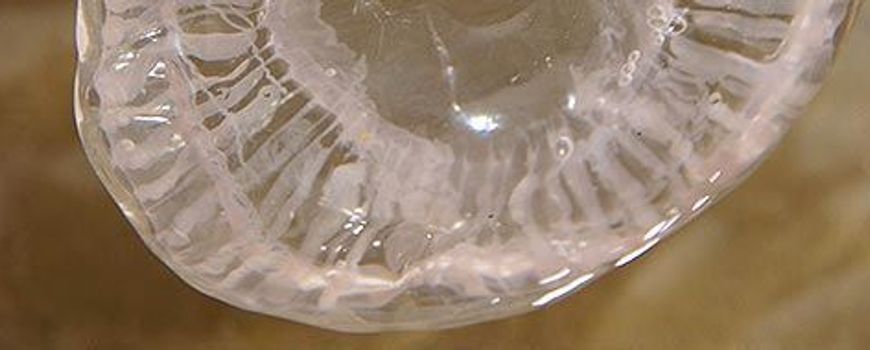 Lampenkapjes zijn verre familie van kwallen. Ze lijken op het eerste gezicht vooral op transparante oorkwallen zonder oren of haarkwallen zonder kleur. Afgelopen dagen spoelden er tientallen aan op het strand van Texel. Dat gebeurt niet vaak.