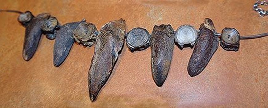 Jetske Veenstra is een creatief mens. Ze heeft een bedrijf 'Sterreke' opgericht, voor bijzondere vieringen en spelen met muziek. Het was dus wel te verwachten dat ze iets bijzonders met haar vondsten heeft gedaan. Het komt niet vaak voor dat iemand een ketting van fossiele visbotten laat maken, anders dan van haaientanden.