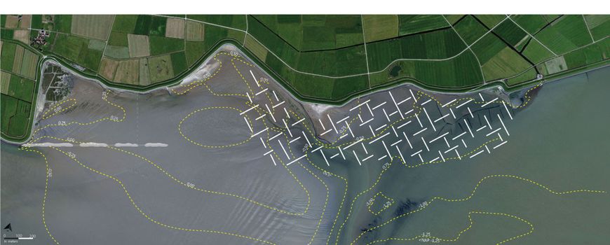 Belangrijk onderdeel van het schetsontwerp zijn de te bouwen open kwelderstructuren. De vormgeving daarvoor is geïnspireerd op het schilderij ‘Pier en Oceaan’ van Piet Mondriaan. Het idee en ontwerp zijn van landschapsarchitect Bruno Doedens en in nauwe samenspraak ontwikkeld met oprichter en creatief-directeur van Oerol, Joop Mulder van Sense of Place. Het open patroon van haaks op elkaar staande dammen of palenrijen zorgt ervoor, dat slib bezinkt en begroeid raakt, terwijl de dynamiek van eb en vloed toch nog overal aanwezig blijft. De variatie zorgt voor een rijke natuur.