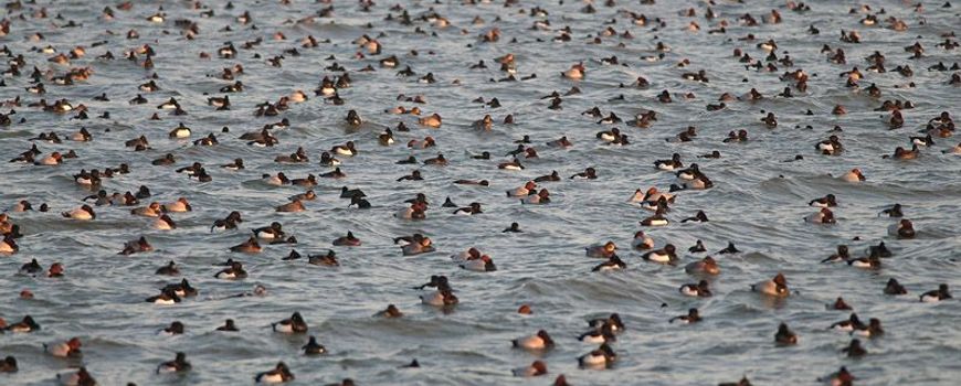 De verhouding in Nederland pakt dus sterk in het voordeel van de mannetjes uit. Voor een totaalbeeld moeten de gegevens natuurlijk gecombineerd worden met tellingen uit heel Europa. Zo’n internationale telling werd ook al eens in de winters van 1988/89 en 1989/90 gedaan. Destijds bleek de verhouding 59% mannen en 41% vrouwen te zijn. In Nederland was het aandeel mannen 65 tot 70%; er is in de afgelopen vijfentwintig jaar dus niet veel veranderd in de samenstelling van groepen Tafeleenden in ons land. Op basis van de internationale gegevens zal er ongetwijfeld een uitgebreidere analyse worden gedaan door de eendenspecialisten. Overigens is het turven van geslachten (en leeftijden) altijd een zinvolle actie om populatie-ontwikkelingen te kunnen volgen. Blijven doen dus!