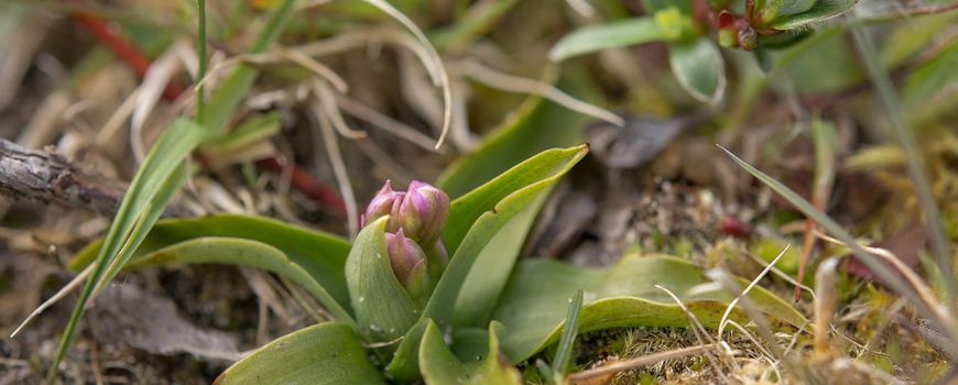 onder het maaiveld in een humuslaag van (deels) verteerde dennennaalden. Deze bodemlaag warmt in het vroege voorjaar snel op. Sneller dan elders in Europa waar de soort groeit in vochtige bossen. De Harlekijn (Anacamptis morio) daarentegen heeft een andere strategie. De soort treft namelijk voorbereidingen voor de bloei. Reeds in de late herfst en winter vormt zij bladrozetten. Daarnaast hebben de planten een wortelknol met reservevoedsel. De Harlekijn put uit deze voorraad bij het aanmaken van een bloeistengel, die afhankelijk van de temperatuur al begin april zichtbaar is.