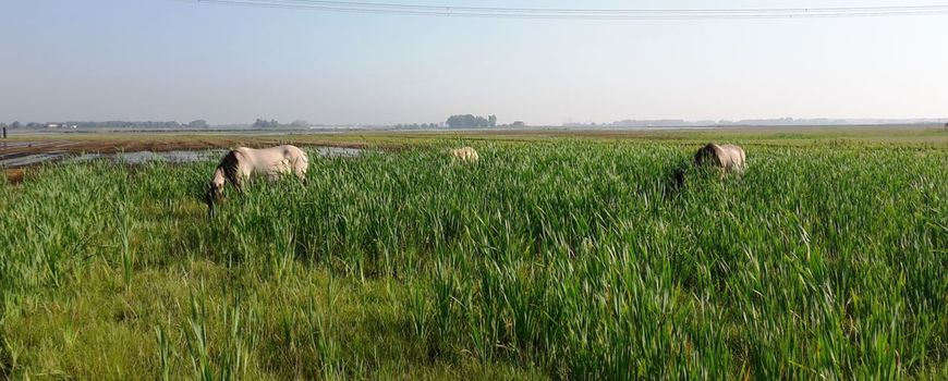 FREE NatureDe konikpaarden, afkomstig uit het Munnikenland bij Slot Loevestein, waren gewend aan het voedselpakket in een hooggelegen uiterwaard. De Noordwaard ligt echter een stuk lager en daar groeien dan ook deels andere planten. Lisdodde komt ook bij Loevestein wel voor, maar niet massaal. Daar wordt de plant niet graag gegeten. In de Noordwaard is een bepaald deel van het gebied zeer drassig en daardoor een ideale vestigingsplaats voor de lisdodde. Daar staat de plant massaal. Als de dieren de plant niet eten, moet deze machinaal worden verwijderd, om voldoende doorstroming te kunnen garanderen. Het is dan ook erg fijn dat de paarden hebben geleerd dat deze plant een goede voedselbron is.